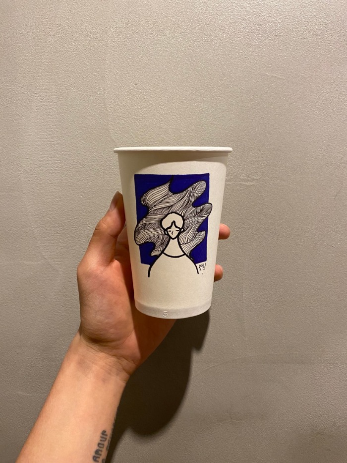 종이컵에 그림을 그리고 있는 Ryu_Myeong입니다.