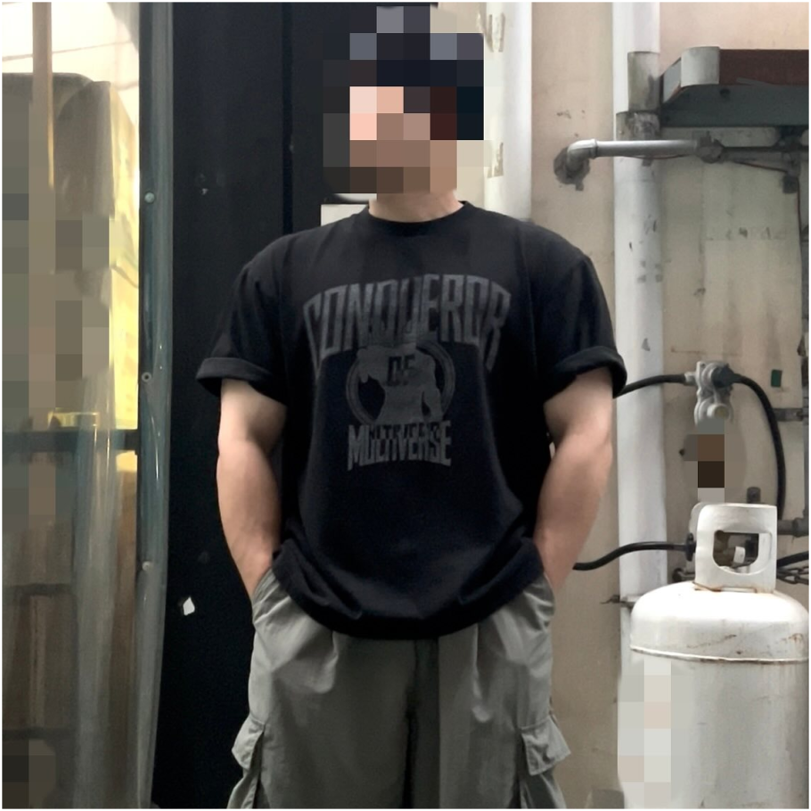 • Man wearing color White, size XL, height 186cm, top 34, waist 28, shoes 280