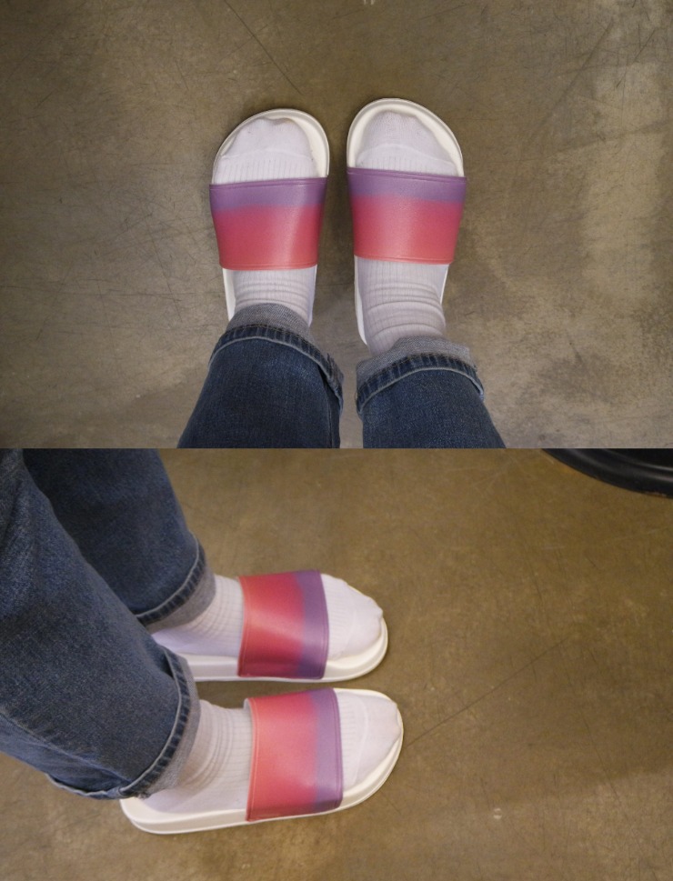• Wet surfaces like tiles, paving stones, marble, etc. are easy to slip on, regardless of the material used for the slipper sole. Please walk with caution.