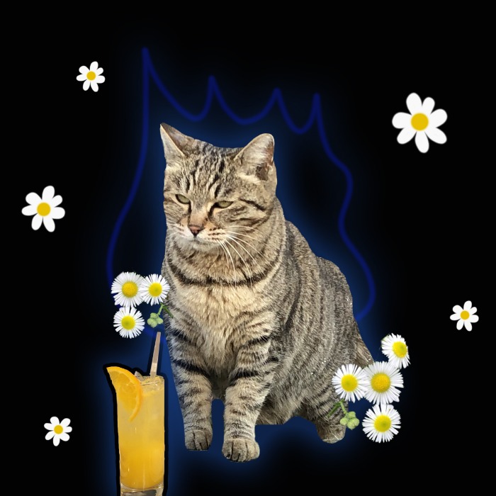 눈을 살벌하게 뜬 고양이가 그려진 맨투맨입니다.