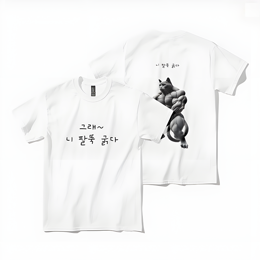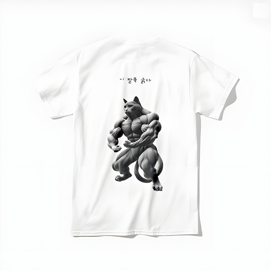 우람한 팔뚝을 자랑하는 근육질 냥냥이 티셔츠입니다.