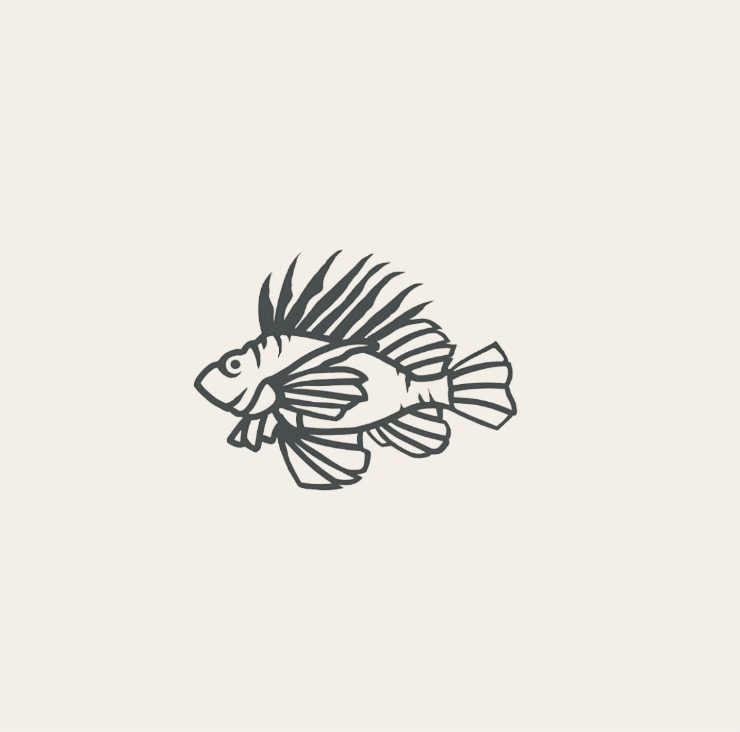 Fish bone 브랜드의 로고이며, 브랜드의 색깔을 잘 표현하고 심플하지만 상징적인 이미지 일러스트입니다.