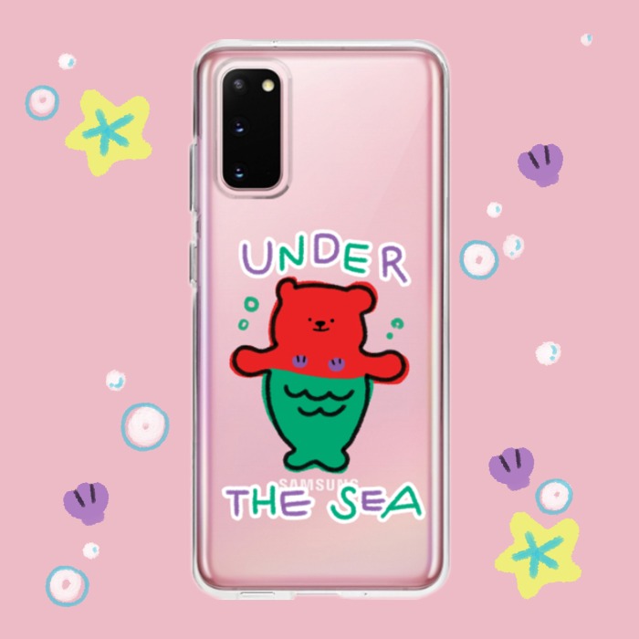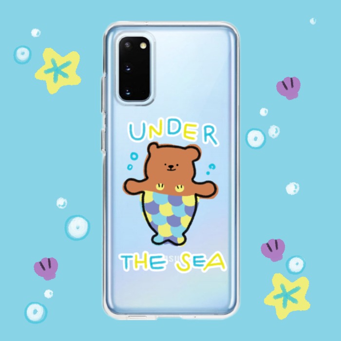 바다 색처럼 영롱한 빛깔의 갤럭시폰과 더욱 찰떡인 아기 인어곰주🧜♀️ 젤리 케이스예요.