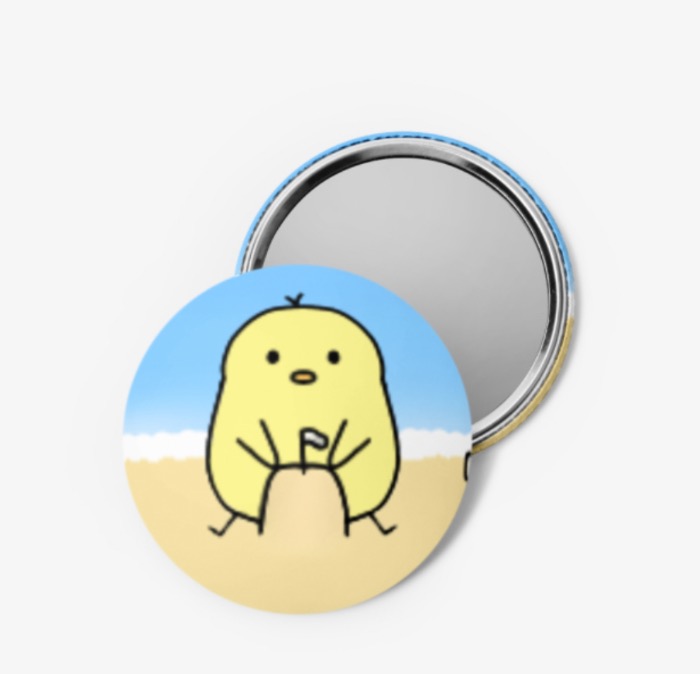 해변가 병아리가 그려져 있는 손거울. 귀여운 디자인!