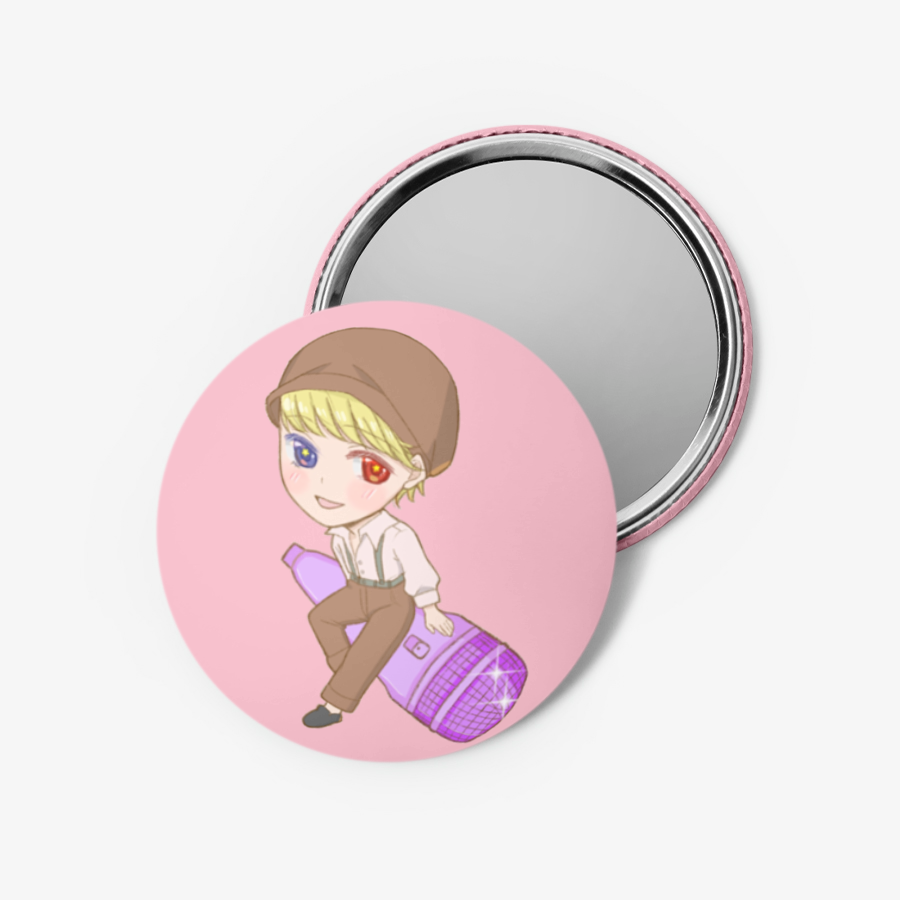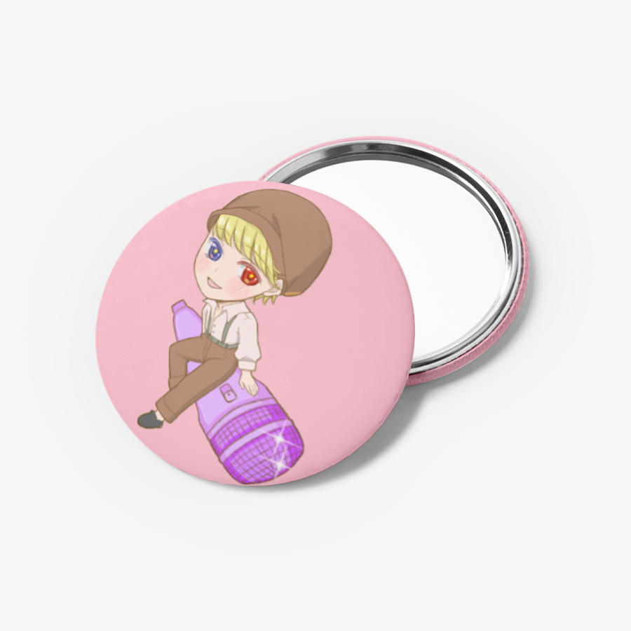 It is a pin button with a diameter of 58mm, and the back is made of a mirror.