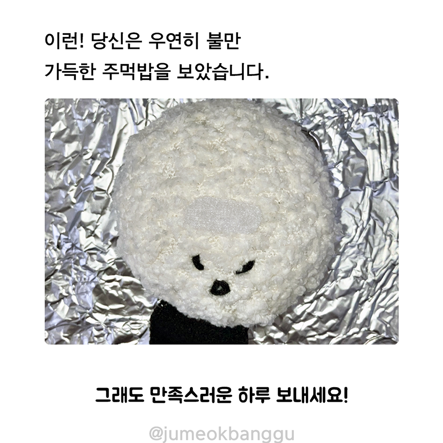 주먹방구-주먹밥문방구의 대표 메뉴, 주먹밥 삼총사(불만, 무념, 햄볶)를 말랑키링세트로..!