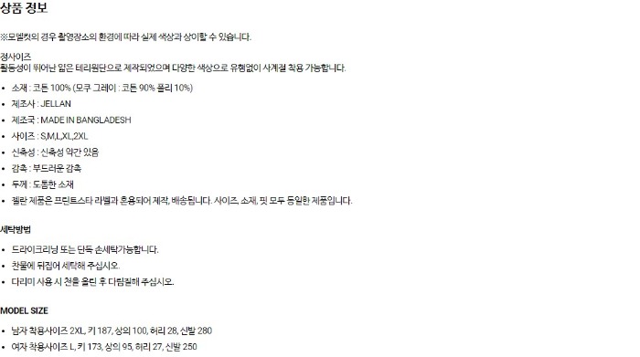 • Material : Cotton 100% (Gray: Cotton 90% Poly 10%)