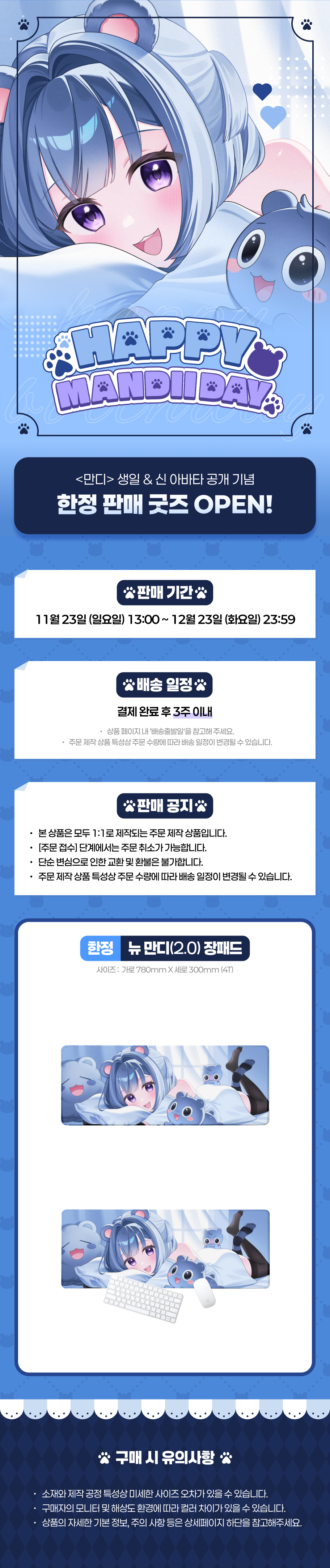 All products delivered by MarppleShop are custom-made based on your order, so exchange/refund due to simple change of mind are not possible. However, if you receive a defective product or if there is a shipping error, you can contact our customer service within 7 days via email, Individual Inquiry, or through our customer center for exchange or refund.