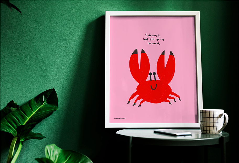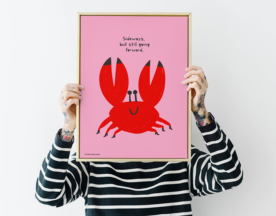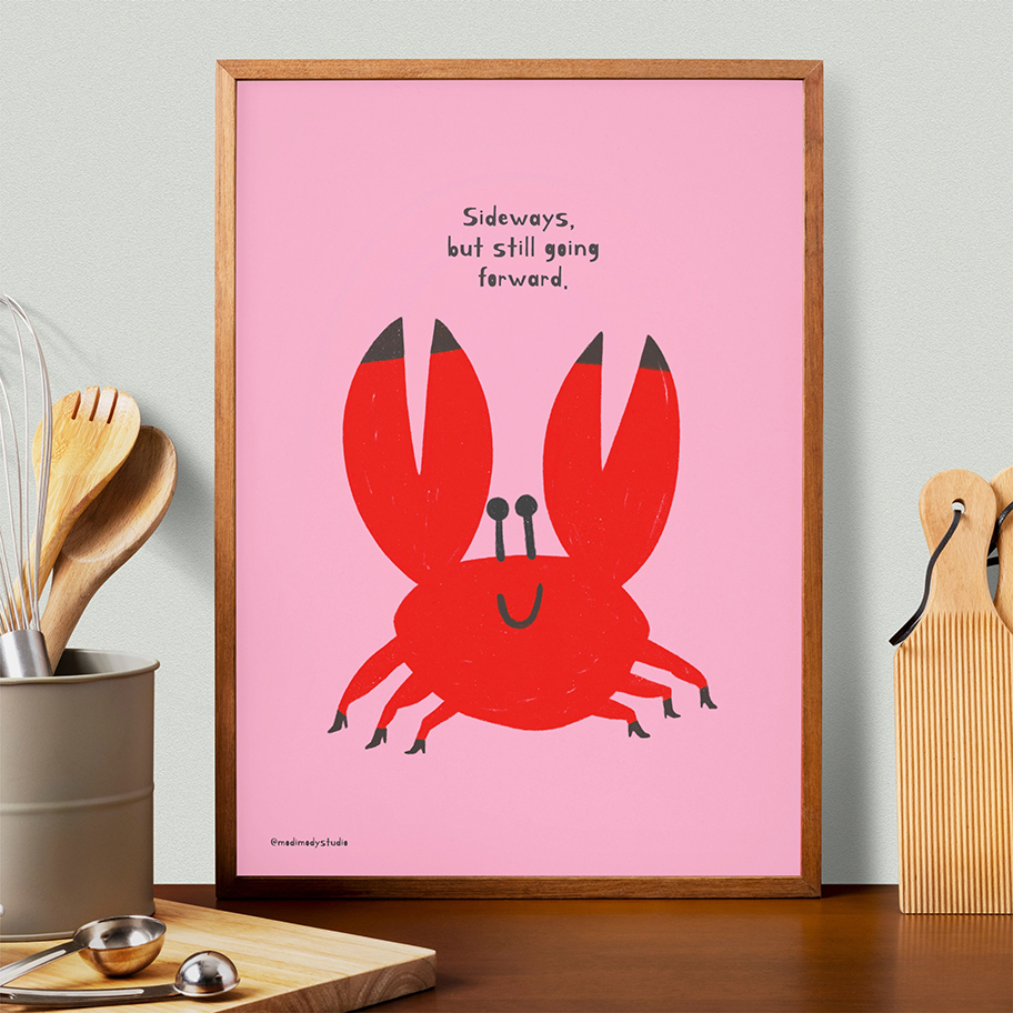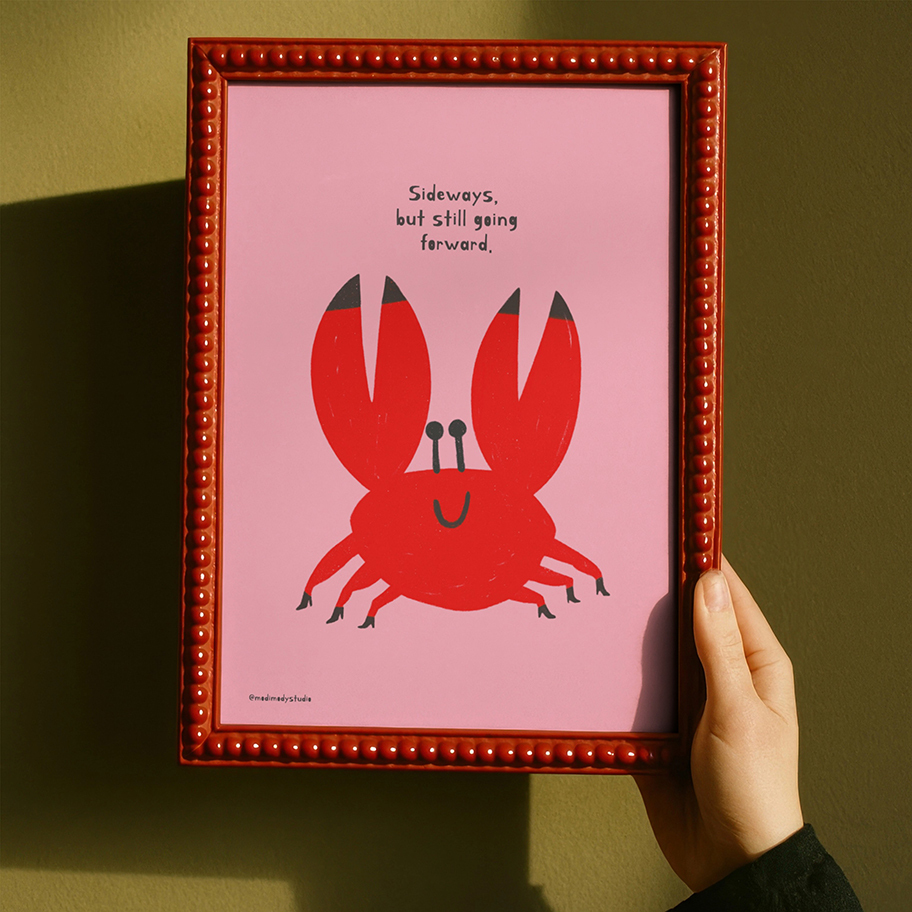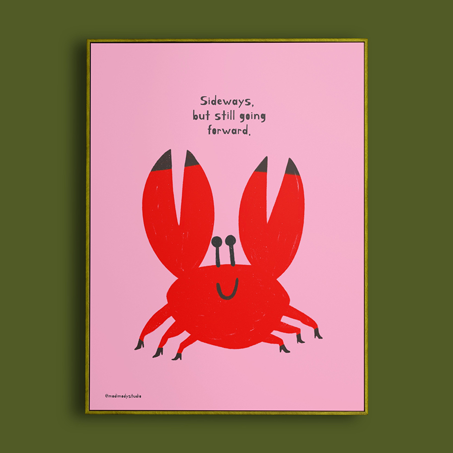 This playful crab illustration is a gentle reminder that even if you’re not moving the