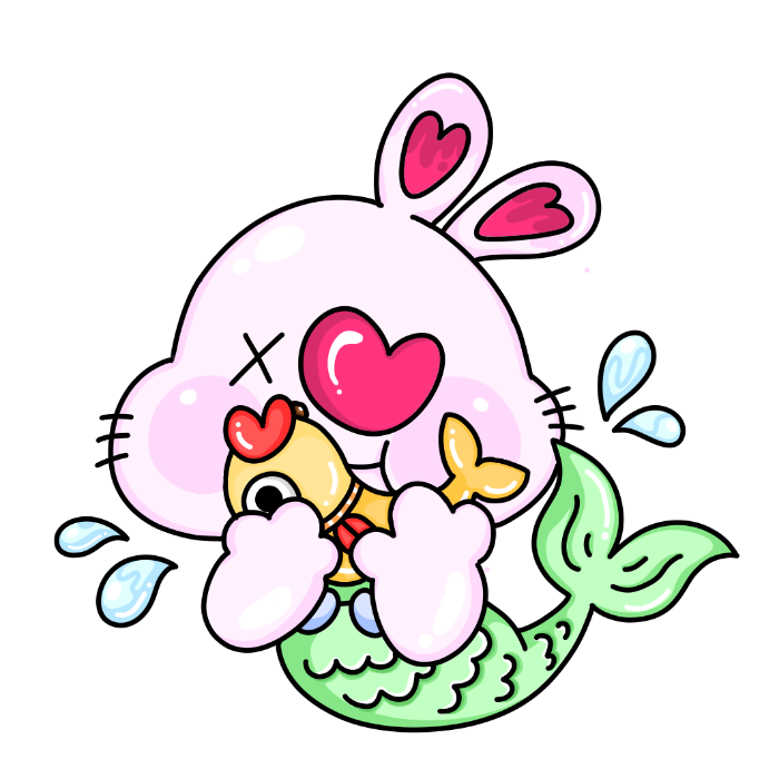 물고기친구와 수영하는 머메이드 오아토끼를 표현했습니다 :)