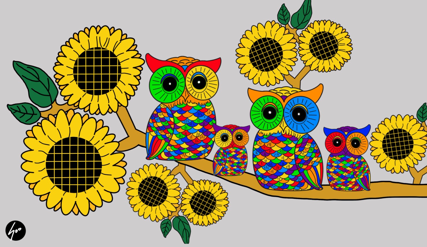 한국인이 특히나 좋아하는 부엉이를 무지개색 스테인글라스로 표현했습니다.