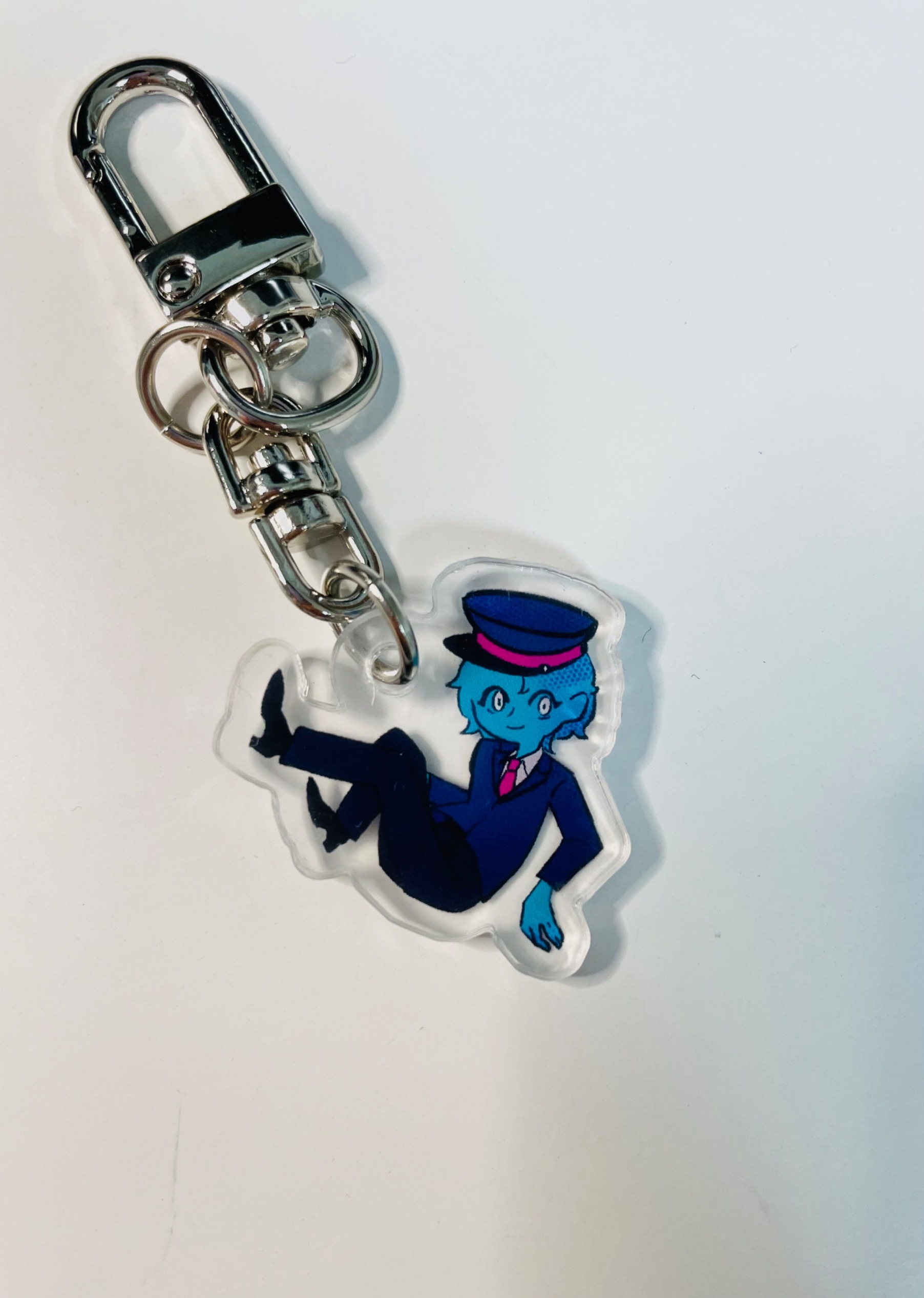 It is a transparent acrylic key ring. By selecting from a variety of acrylic rings, you can create your own key ring.