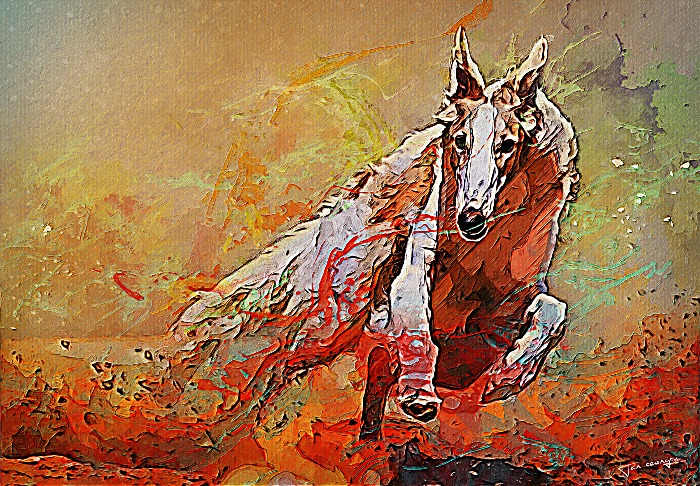 그레이하운드가 강렬하게 질주하는 유화작업입니다.