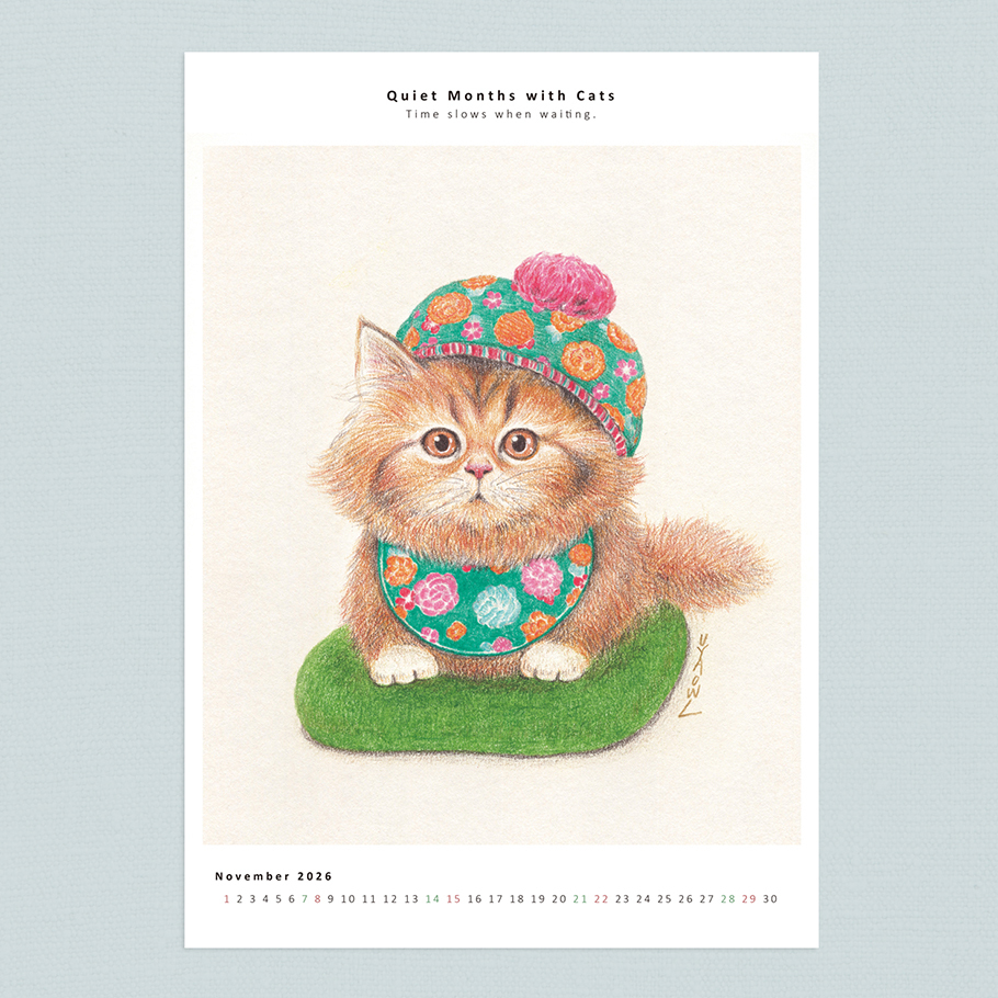 2026 Cat Illustration Calendar_November Cozy Winter Kitten A3