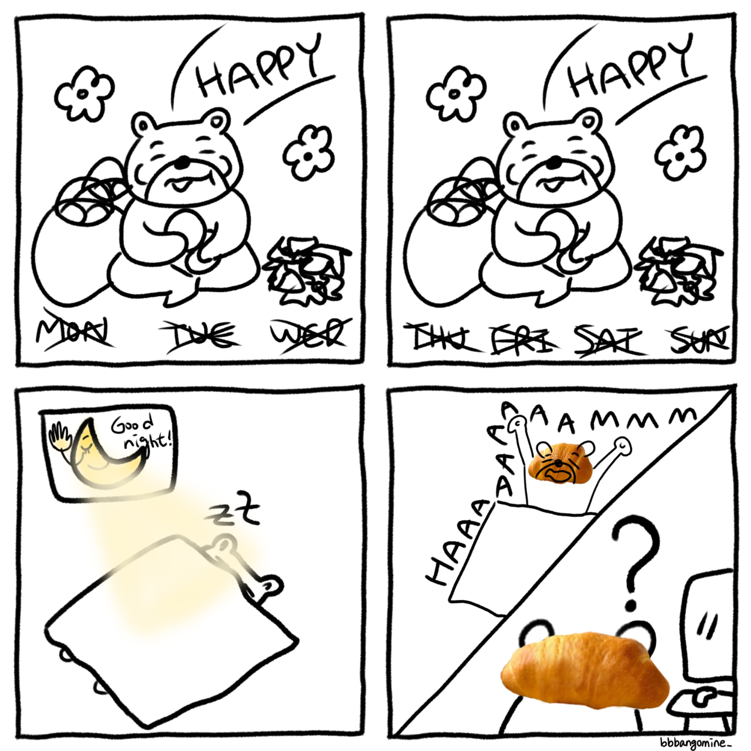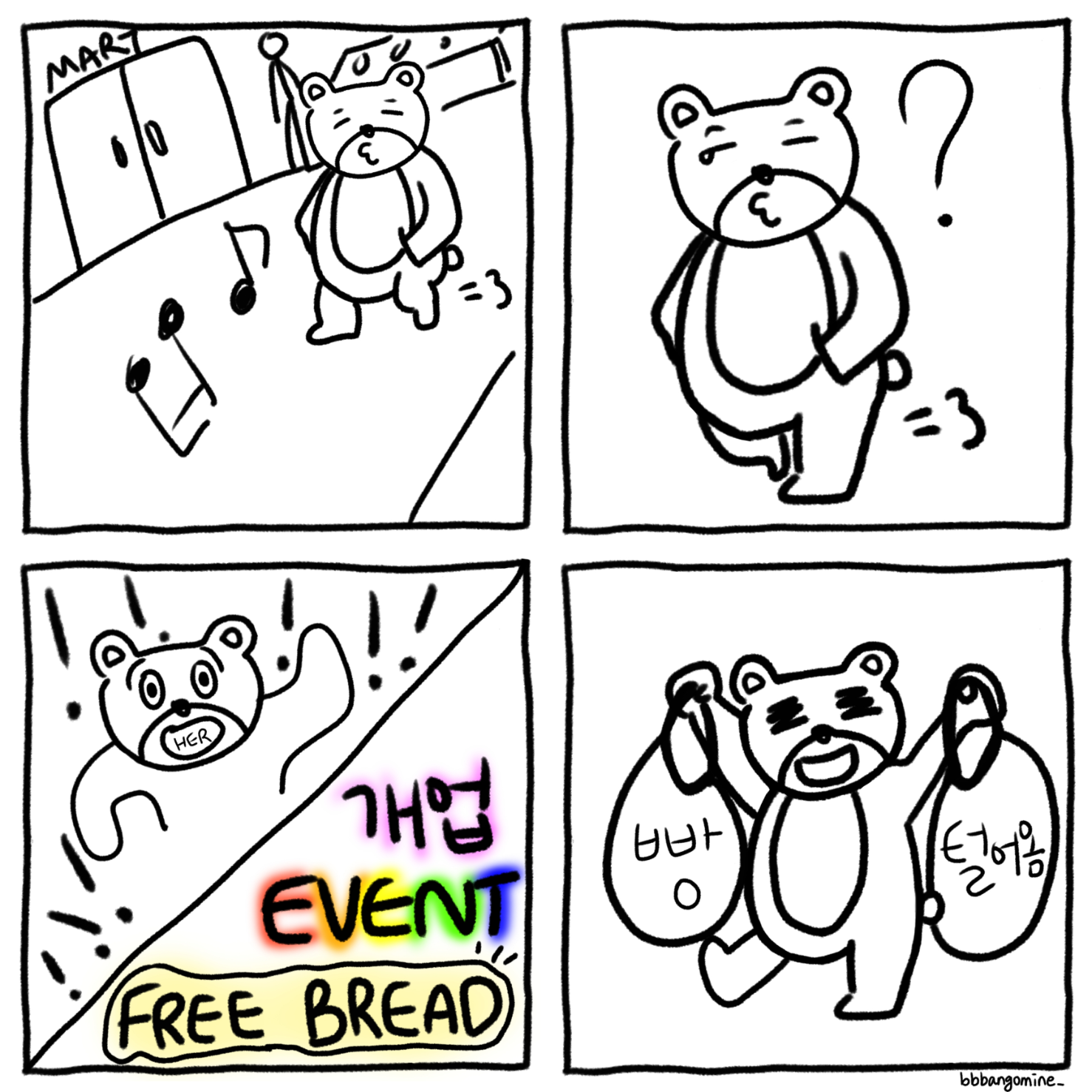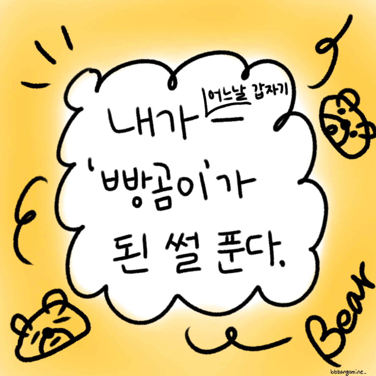 빵을 정말 좋아하는 나는, 빵을 너무 많이 먹고 얼굴이 빵이 됐어 푸헤헤.
