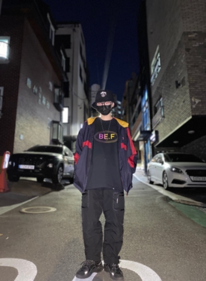 Be.f 그라데이션 반팔은 앞면 프린팅에 뒷면 무지로 디자인 되어있으며,