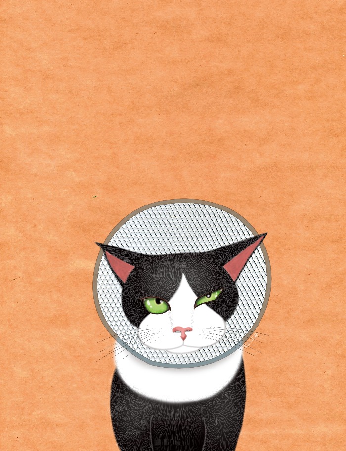 중성화 수술 후 고깔을 쓴 깜군