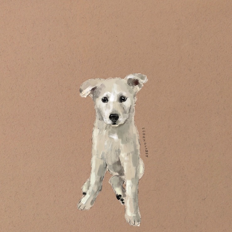 반려견 · 강아지 유화 일러스트, 진돗개 믹스견 봉자 엊그제
