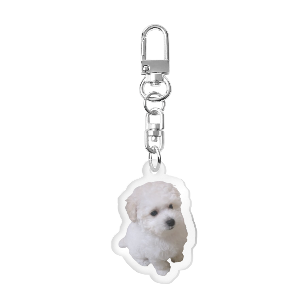 透明なアクリル素材のキーホルダーです。