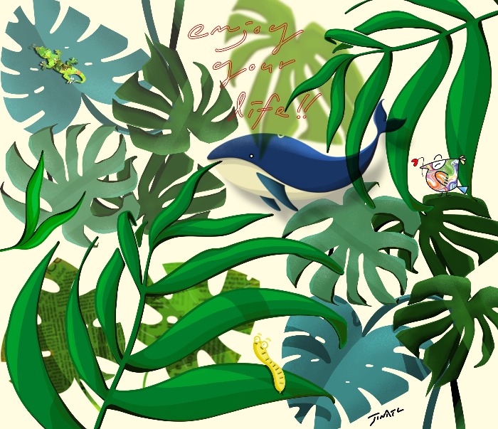 **-★ 바쁜 일상... 좀 쉬었다 가시라고 초록 세상을 그렸습니다. 고래도 한 마리 넣어드렸습니다.
