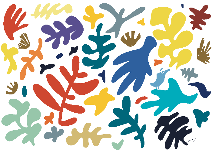 **-★ 앙리 마티스의 종이 오리기 미술(Paper Cut-outs)도 늘 오마쥬의 대상입니다. 잠시 자유로움과 풍부한 색감을 즐겨보시는 건 어떨지요.