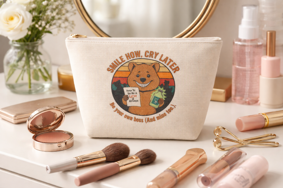 가방 속 작은 힐링! fake joo의 스테디셀러, '미소 짓는 쿼카' 디자인이 담긴 다용도 파우치입니다.