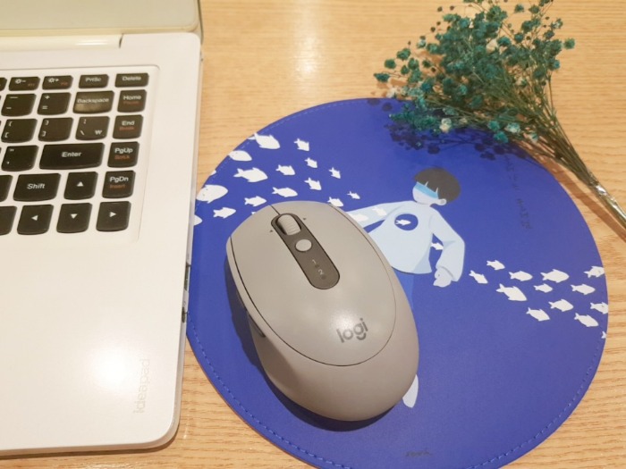 やわらかい合成皮革で作られた円形マウスパッドです。
