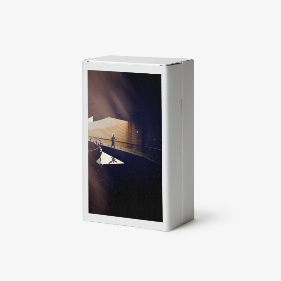 この作品は、日常と夢の境界をあいまいに表現しています。現実の構造物と宇宙、そしてその間を歩く人物を通じて、私たちが夢見る理想的な世界と絶えず直面する現実の間の緊張とバランスを探求しています。宇宙を背景にした建築的要素は、限界を超えようとする人間の努力と願望を象徴し、それぞれの個人が持つ夢の実現を応援するメッセージを含んでいます。
