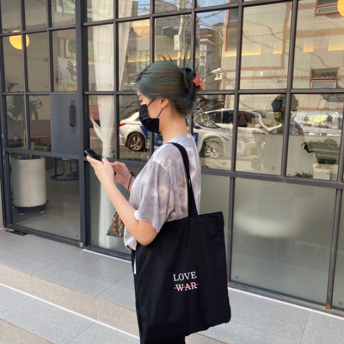[러브낫워] 린넨 블랙 에코백 (프린팅버전)