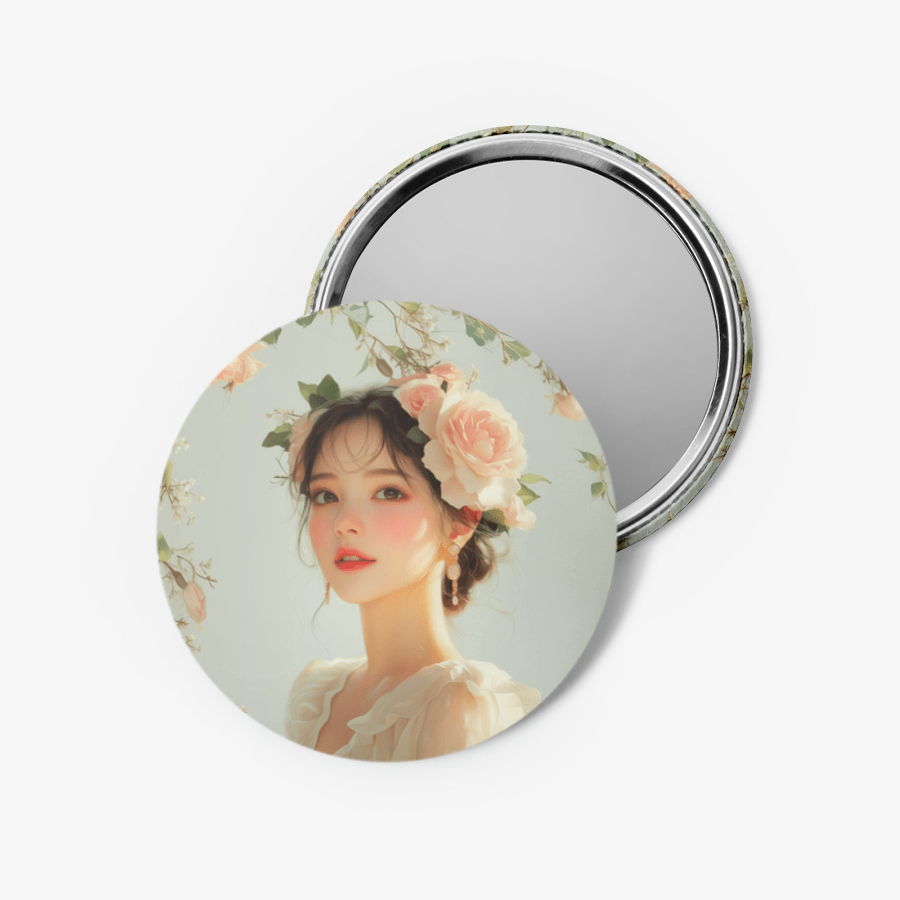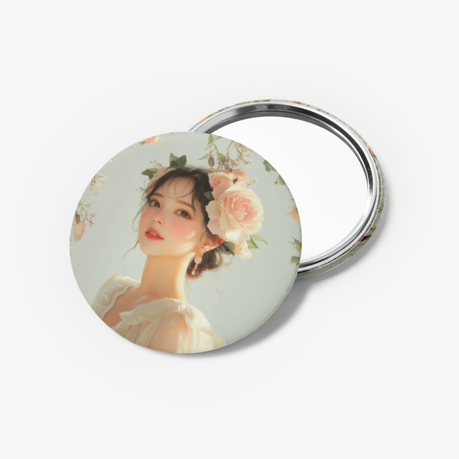直径58mmのピンボタンで、裏面が鏡で製作されます。