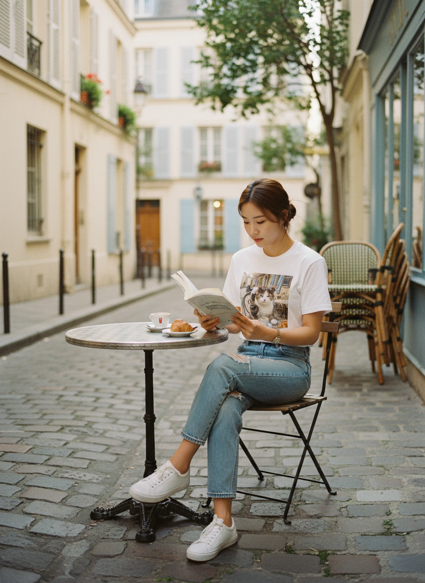 薄めの生地で着やすいアイテム。7サイズ展開なのでサイズ選びに困りません。細身シルエットで日本人に合ったTシャツです。