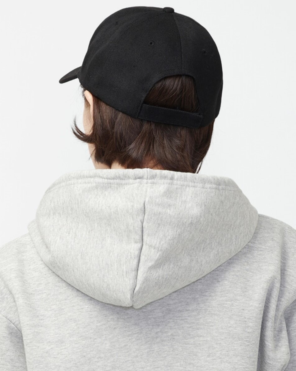 ベーシックなベースボールキャップです。後ろはマジックテープになっており、バックルが無いのでシンプルですっきりしたイメージです。
