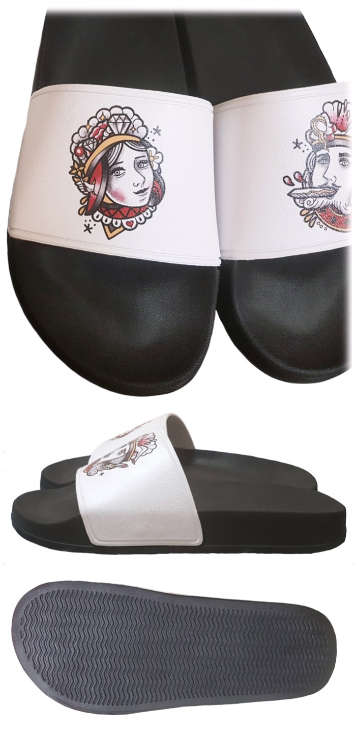 底面の色はオフホワイト、黒この二つでアッパー前面に自分の好きなデザインで印刷できます。