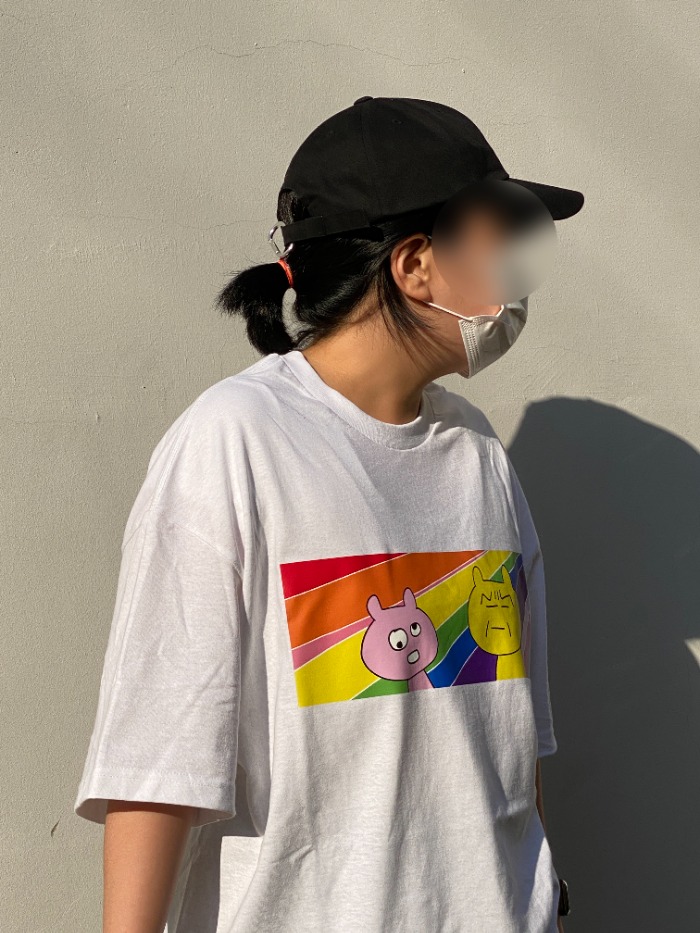 원단이 너무 좋습니다 얇지만 비치지 않는 시원한 재질! 남녀공용 오버핏 상품입니다. 정사이즈보다 살짝 커요!