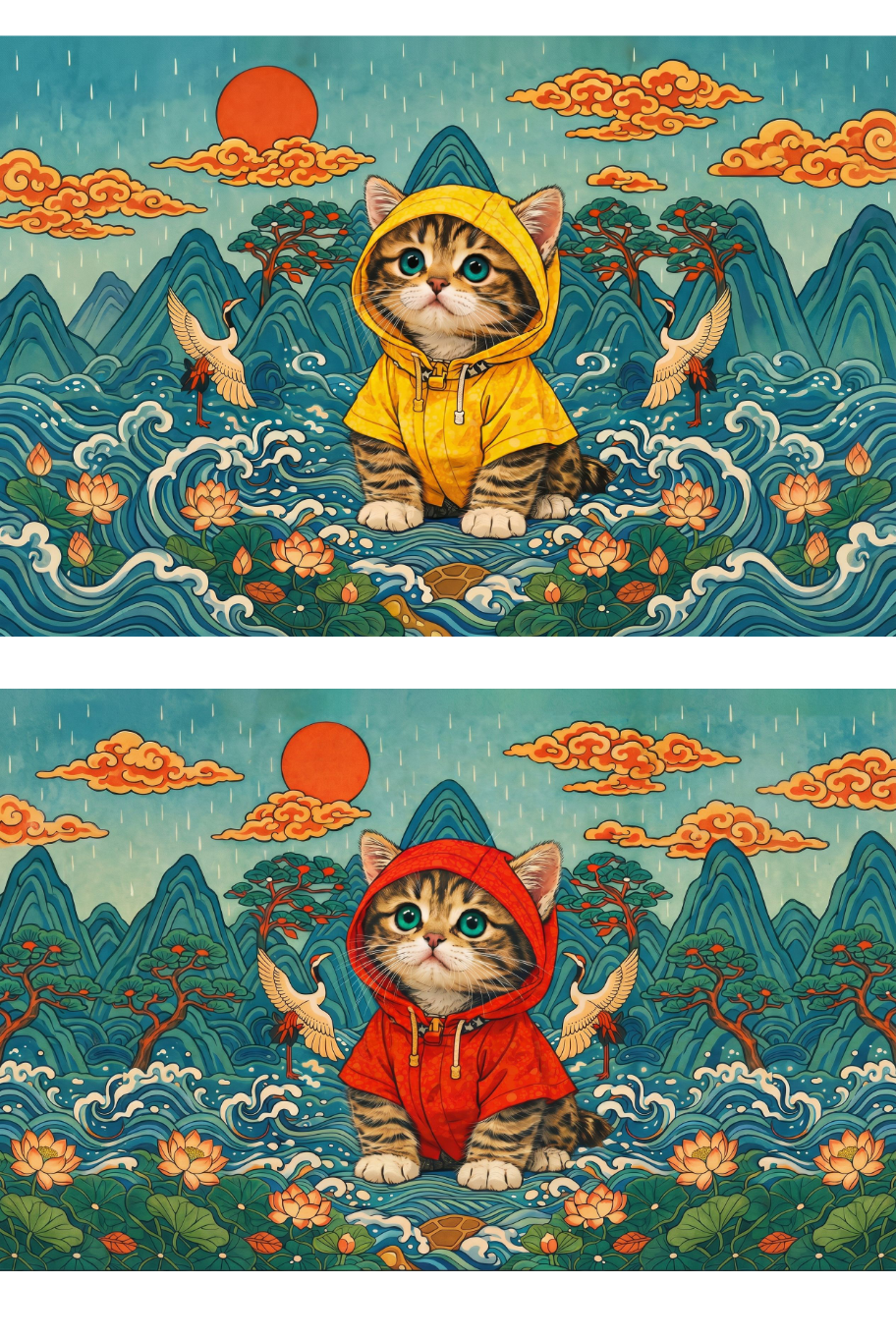 귀여운 고양이 캐릭터와 동양적인 민화 감성이 어우러져