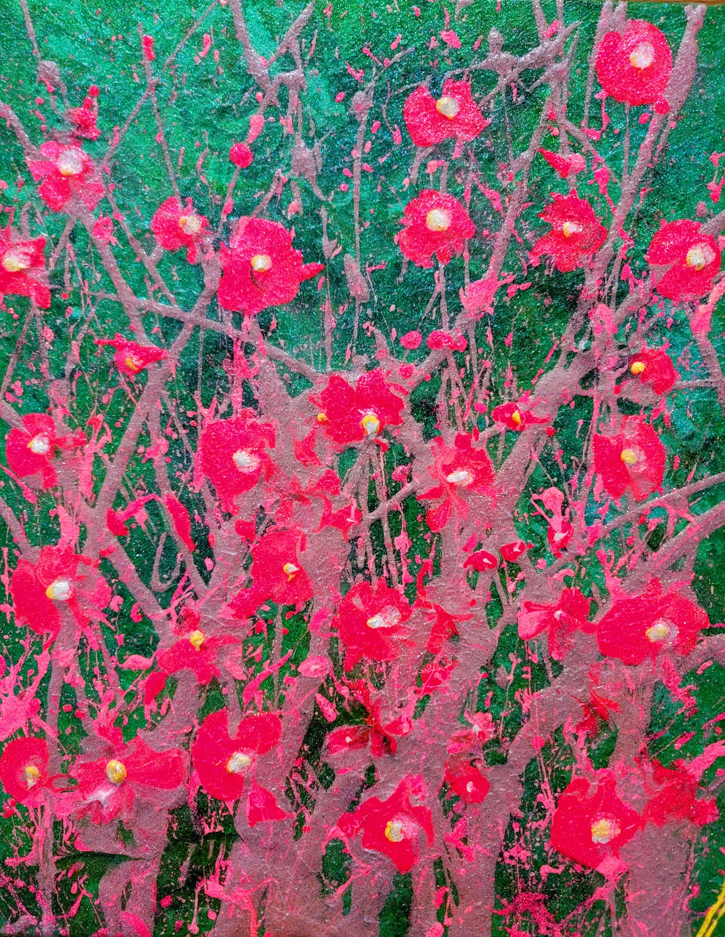 소울황소의 홍매화의 전설을 모티브로 한 아크릴 회화 작품을 쿠션 디자인에 적용함