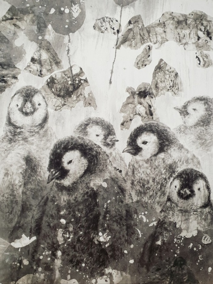 HAN Seonho, Antarctica, 2018, oriental paints and oil on wooden panel, 65x 50 cm
