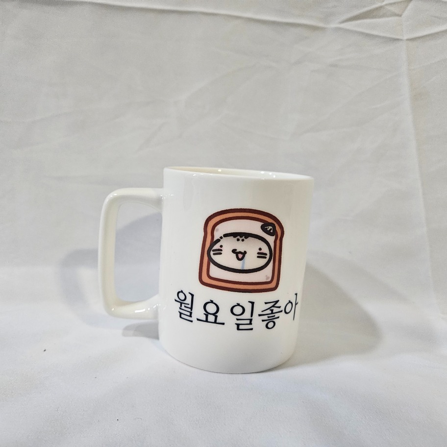 깨끗한 백색의 본차이나 머그컵입니다.