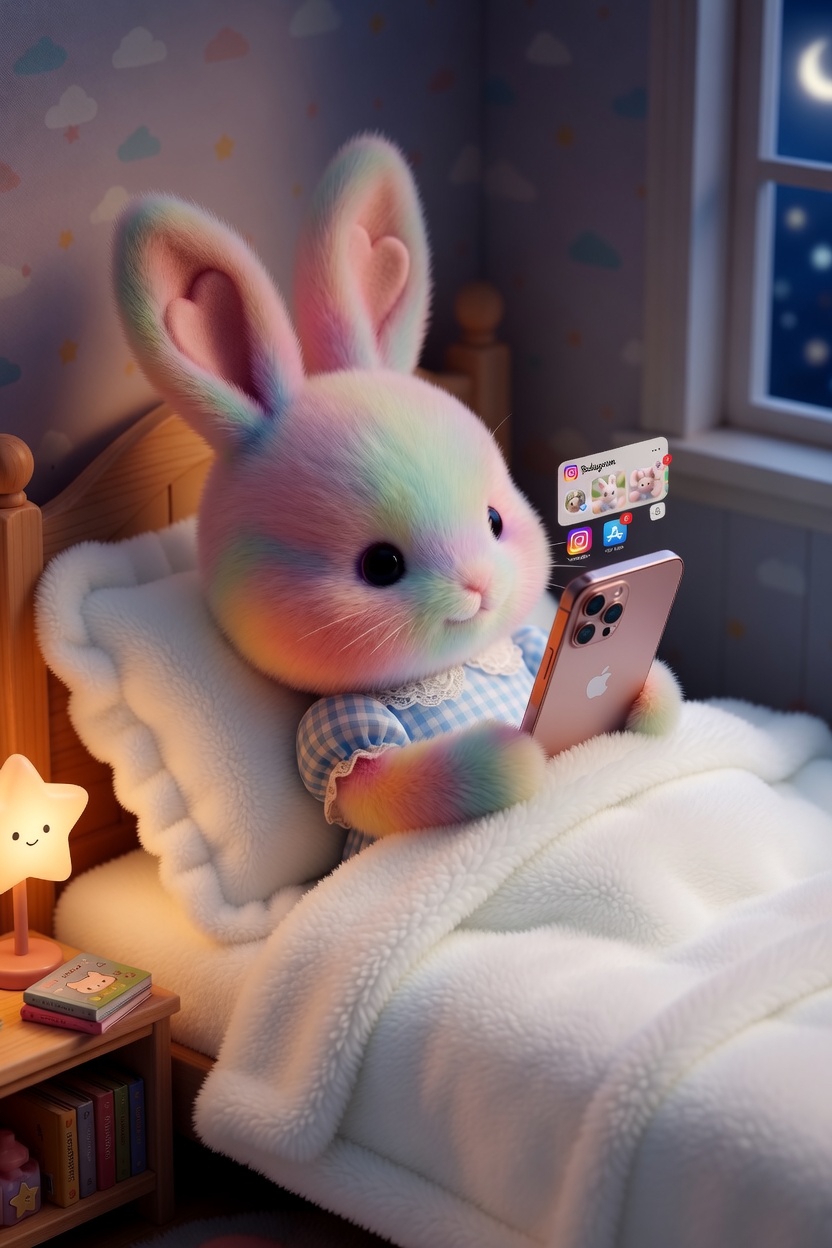 따뜻한 달빛 아래 이불 속에서 폰 보는 코코 🌙🐰