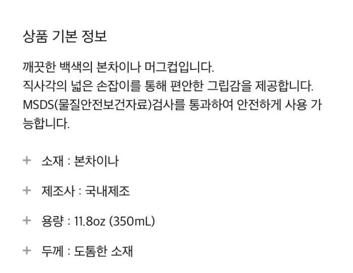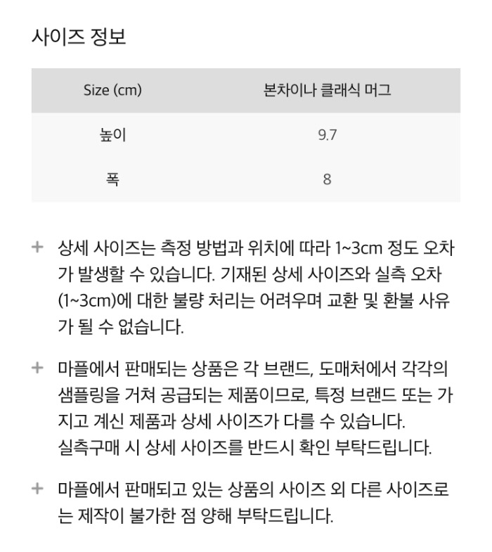 | Size (cm) | 본차이나 클래식 머그 |
