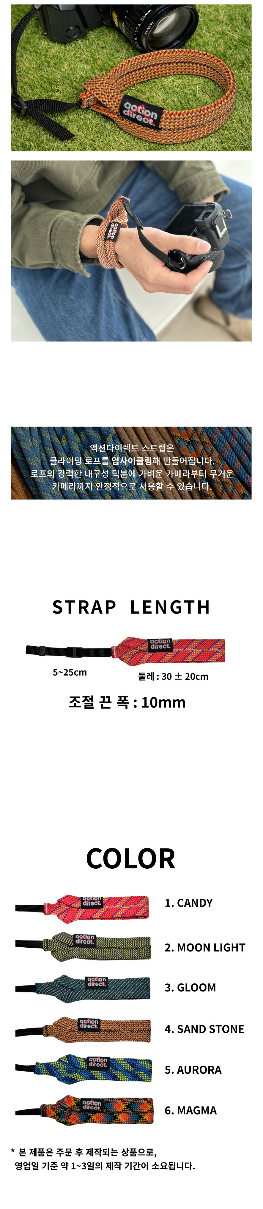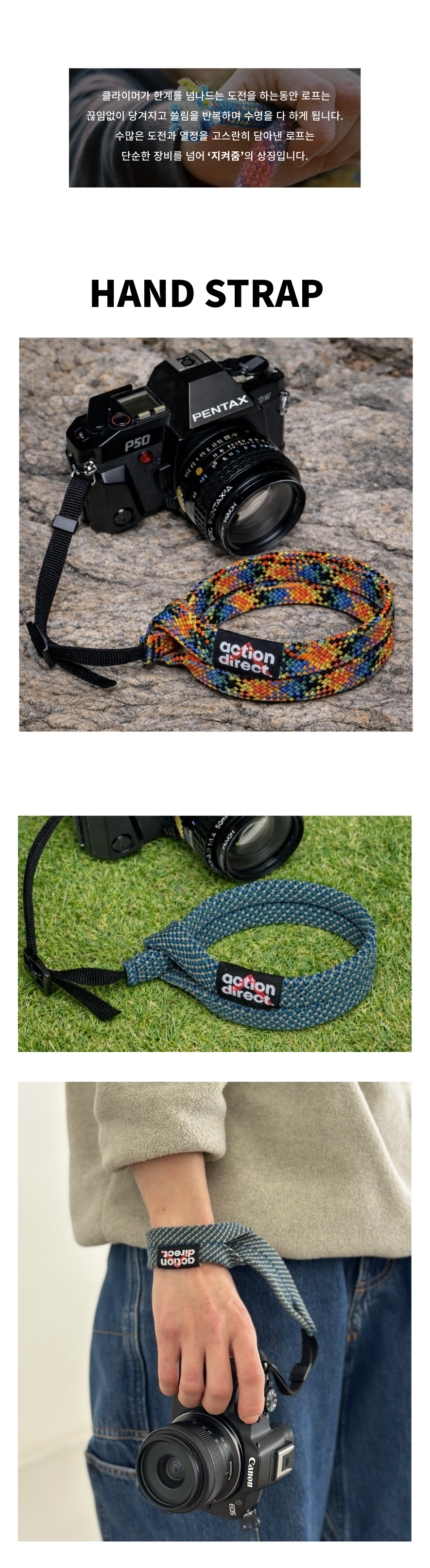 튼튼하고 컬러풀한 클라이밍 로프에서 재탄생한 카메라 손목 스트랩 입니다