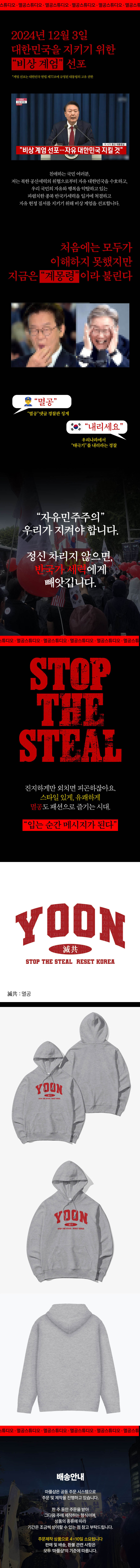 [오버핏 기모 후드] 윤어게인 YOONAGAIN 멸공 CCP OUT 윤석열 대통령 집회굿즈
