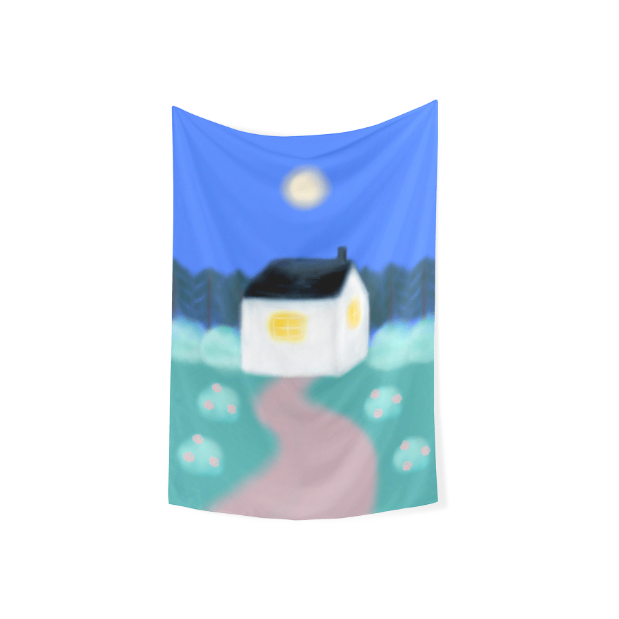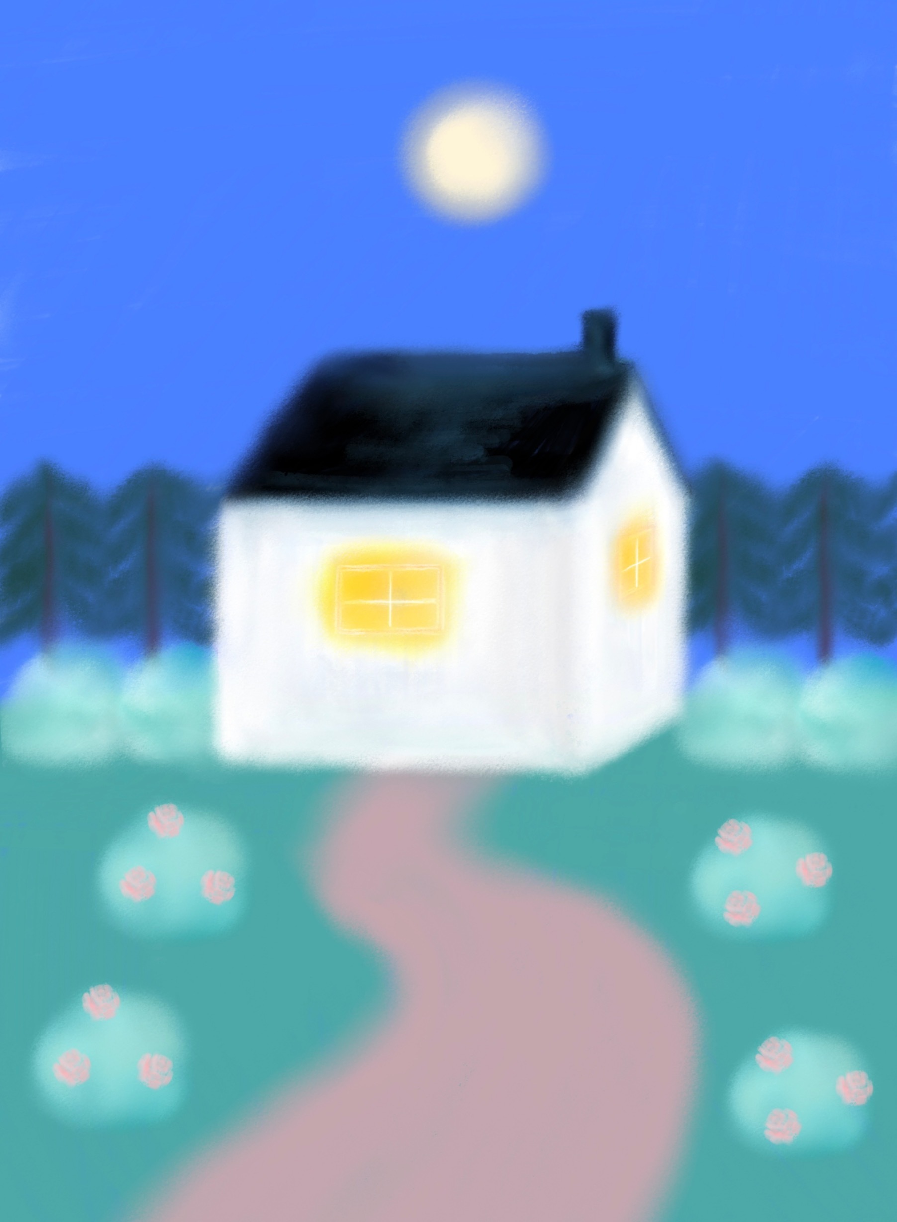 아무것도 보이지 않는 어둠 사이로 흰색의 아담한 집의 창문에