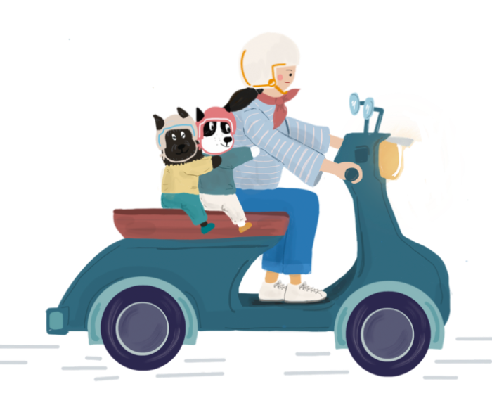 귀여움 듬뿍!! 댕댕이들과 라이딩을 즐기는 일러스트입니다.