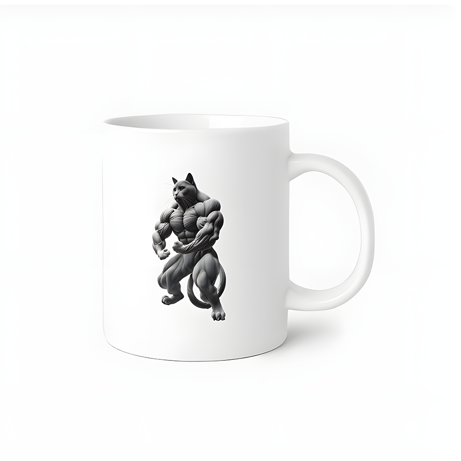 우람한 팔뚝을 자랑하는 근육질 냥냥이 머그컵입니다.