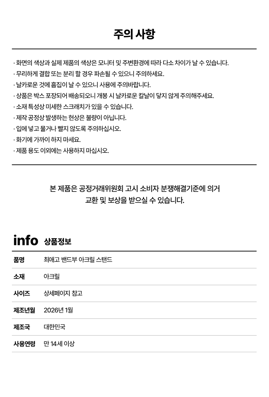 - 상품 수령 7일 이내, 개봉·훼손 전만 환불·교환이 가능합니다.