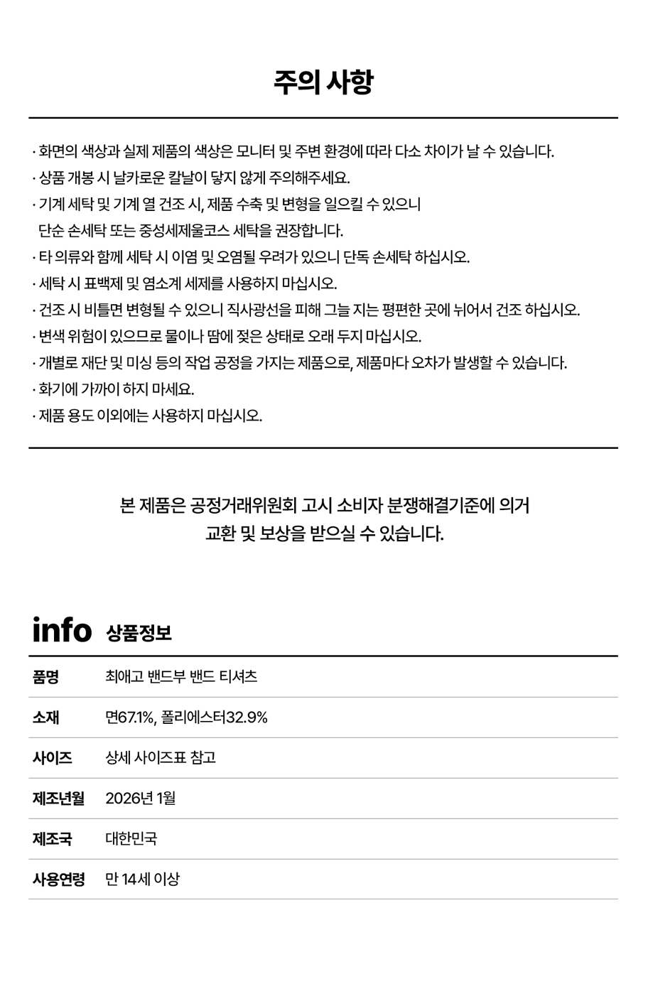 - 맞춤 제작·신선식품 등은 환불·교환이 불가합니다.