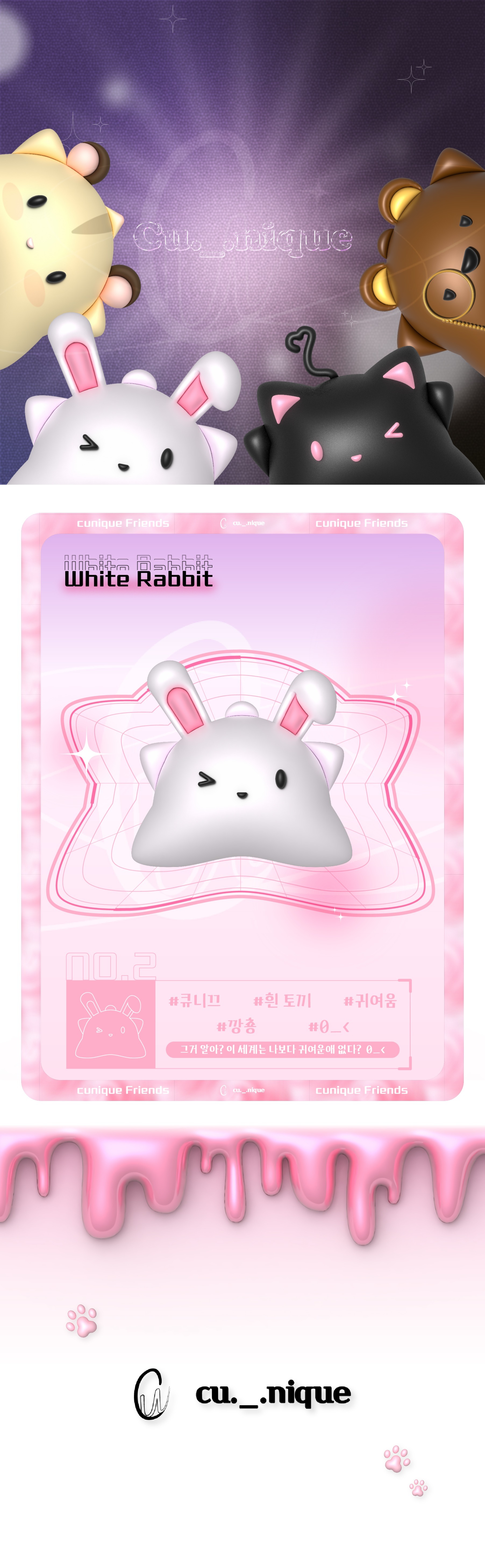 큐니끄만의 귀엽고 독특한 디자인으로 태어난 흰 토끼 캐릭터입니다.