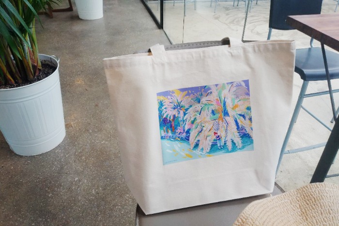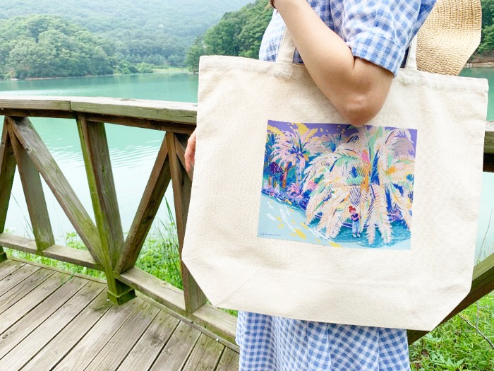 화려하고 밝은 색감으로 기분이 좋아지는 에코백입니다.