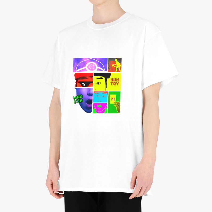콜라보레이션 전문 브랜드 매드포플러스는 팝아트 스타일, 그리드 레이아웃, 형광 색감의 힙하고 팝한 형식의 디자인 컨셉을 가지고 있습니다.